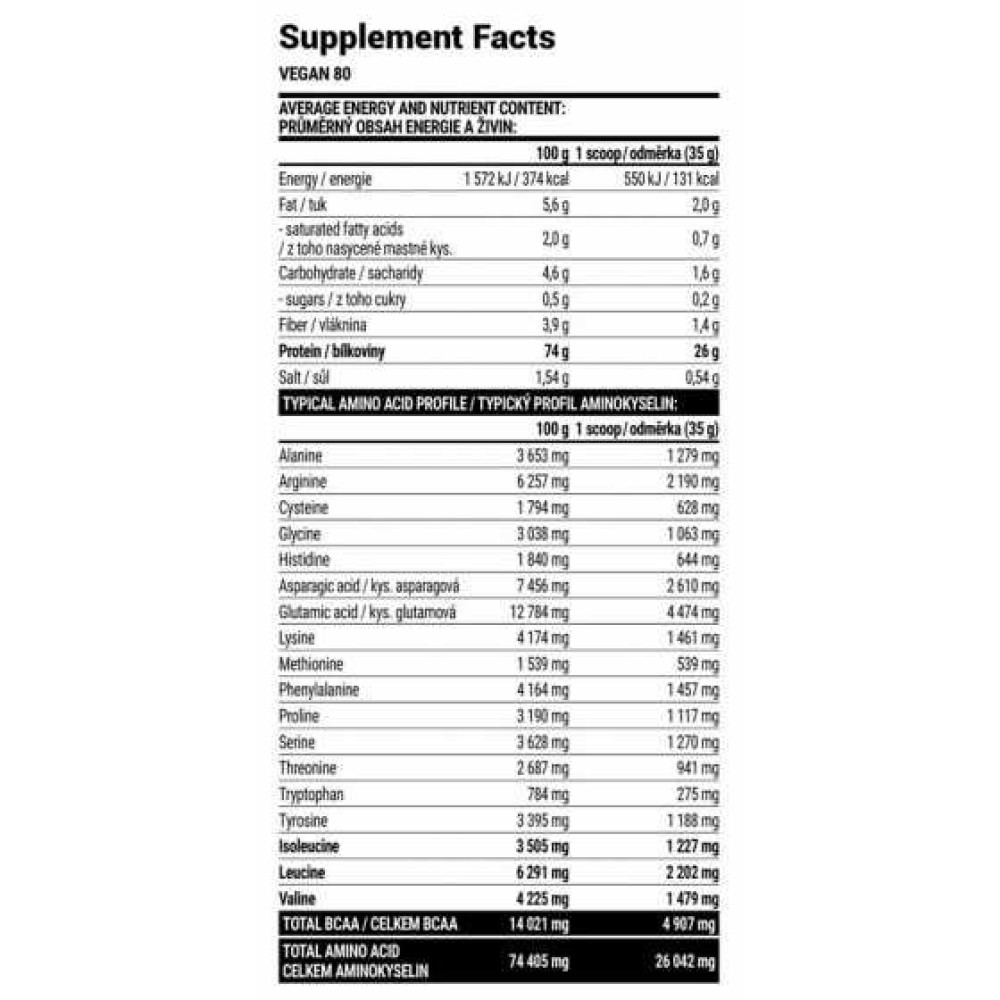 Specification Extrifit Vegan 80 2000 g EXTRIFIT