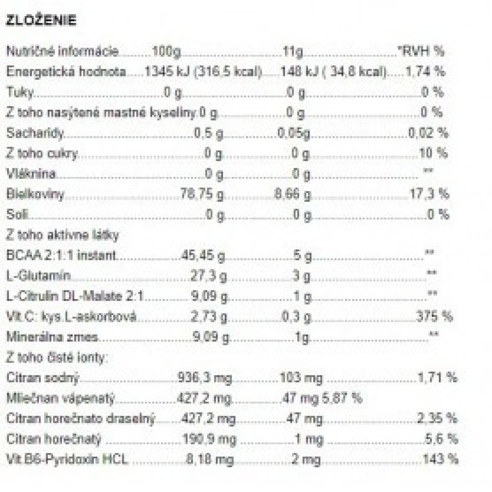 Specification Androrganics Excellent BCAA Complex 440 g Androrganics